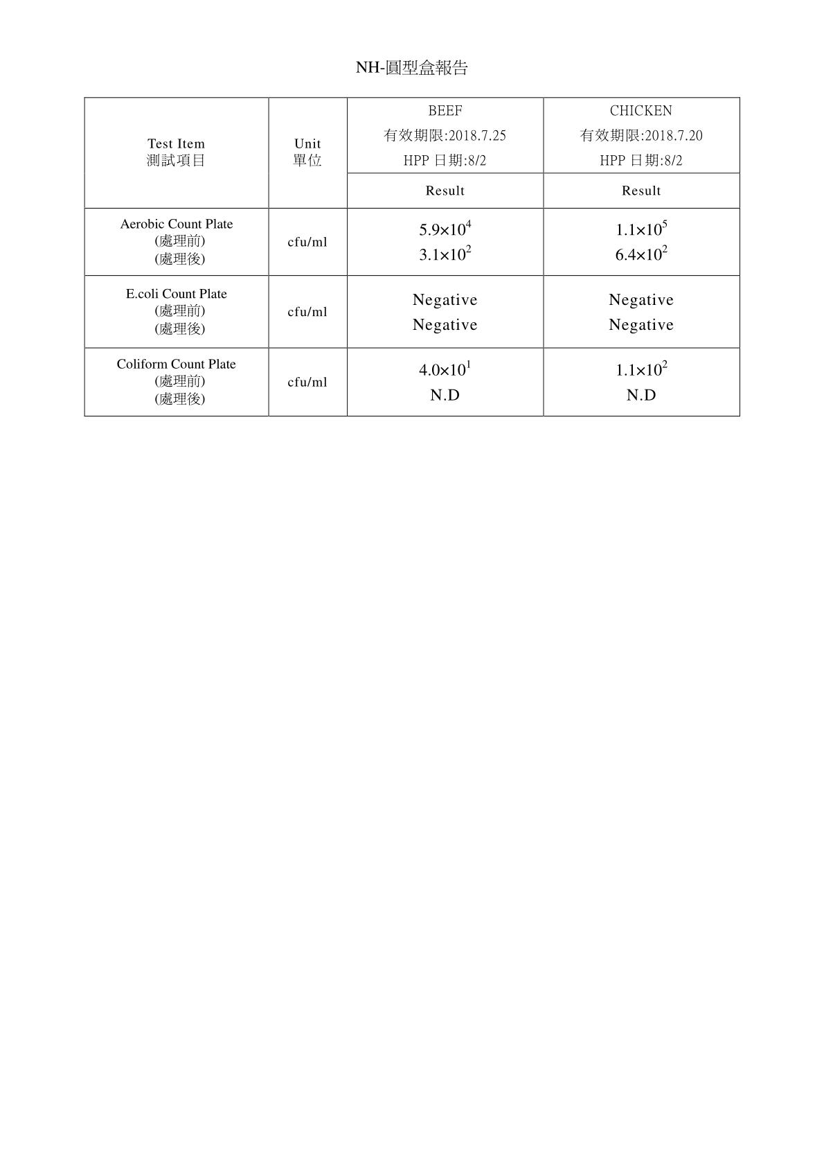 卡尼生肉主食經高壓殺菌前後生菌數檢測