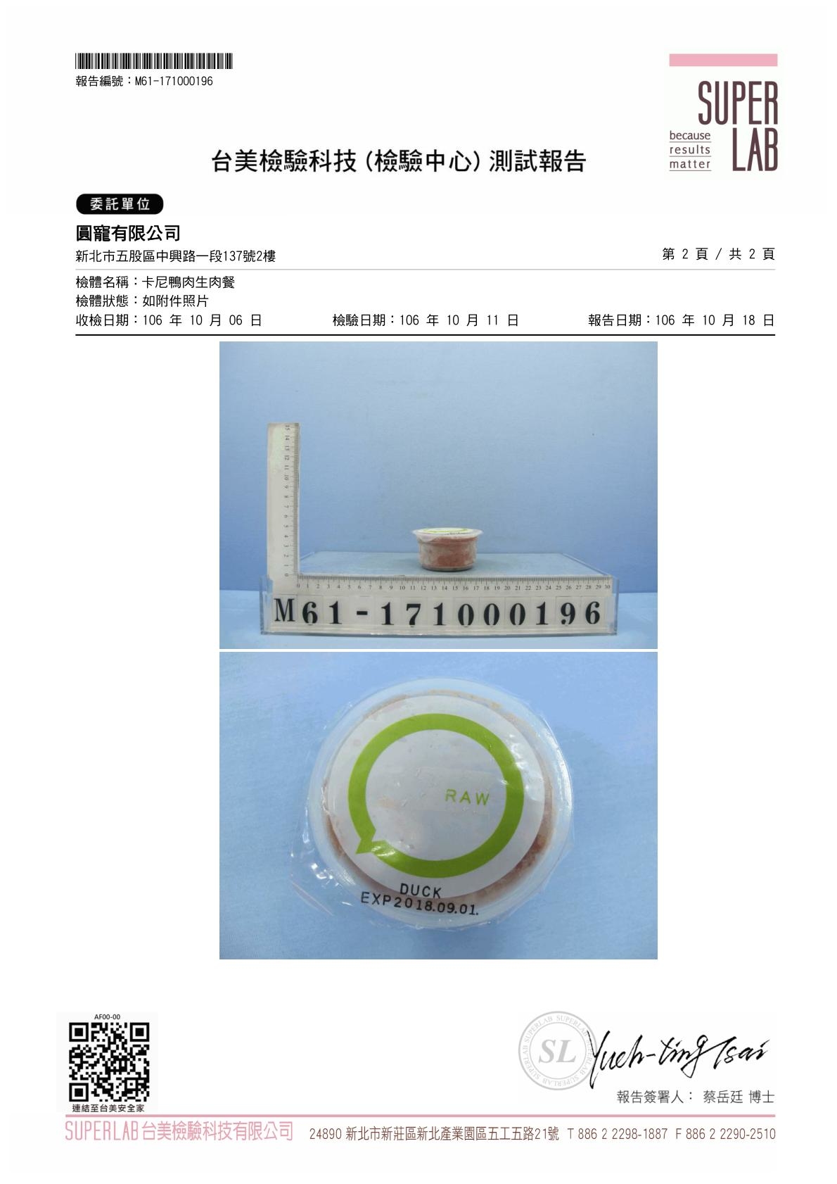 對應產品批號:DUC1797 - 鴨肉生肉餐