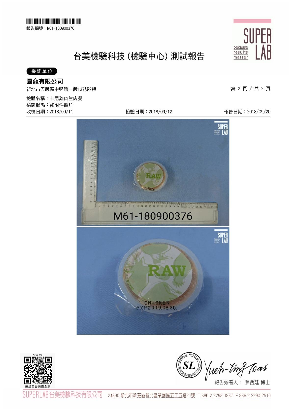 對應產品批號:CHC18119 - 雞肉生肉餐