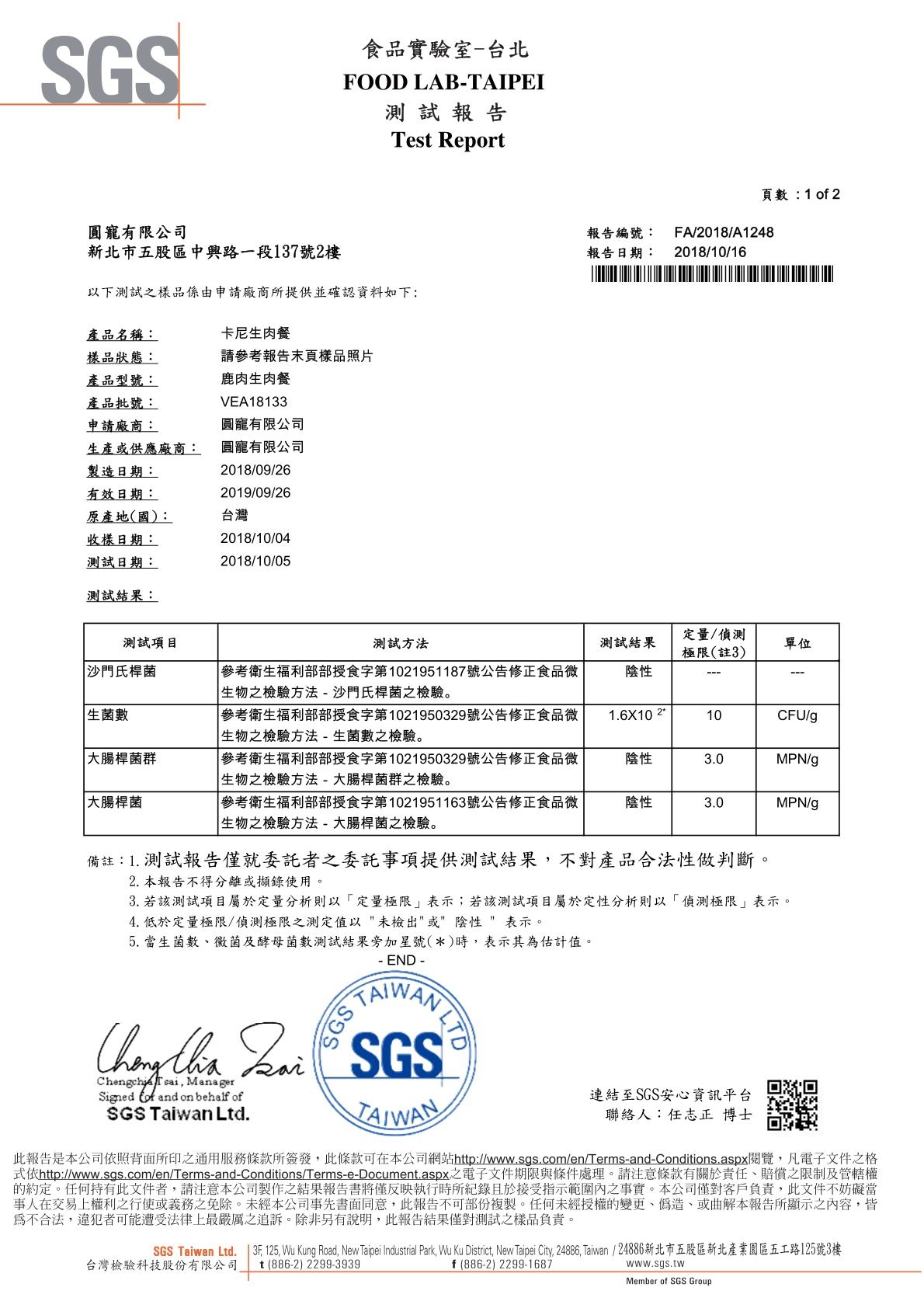 對應產品批號:VEA18133 - 鹿肉生肉餐