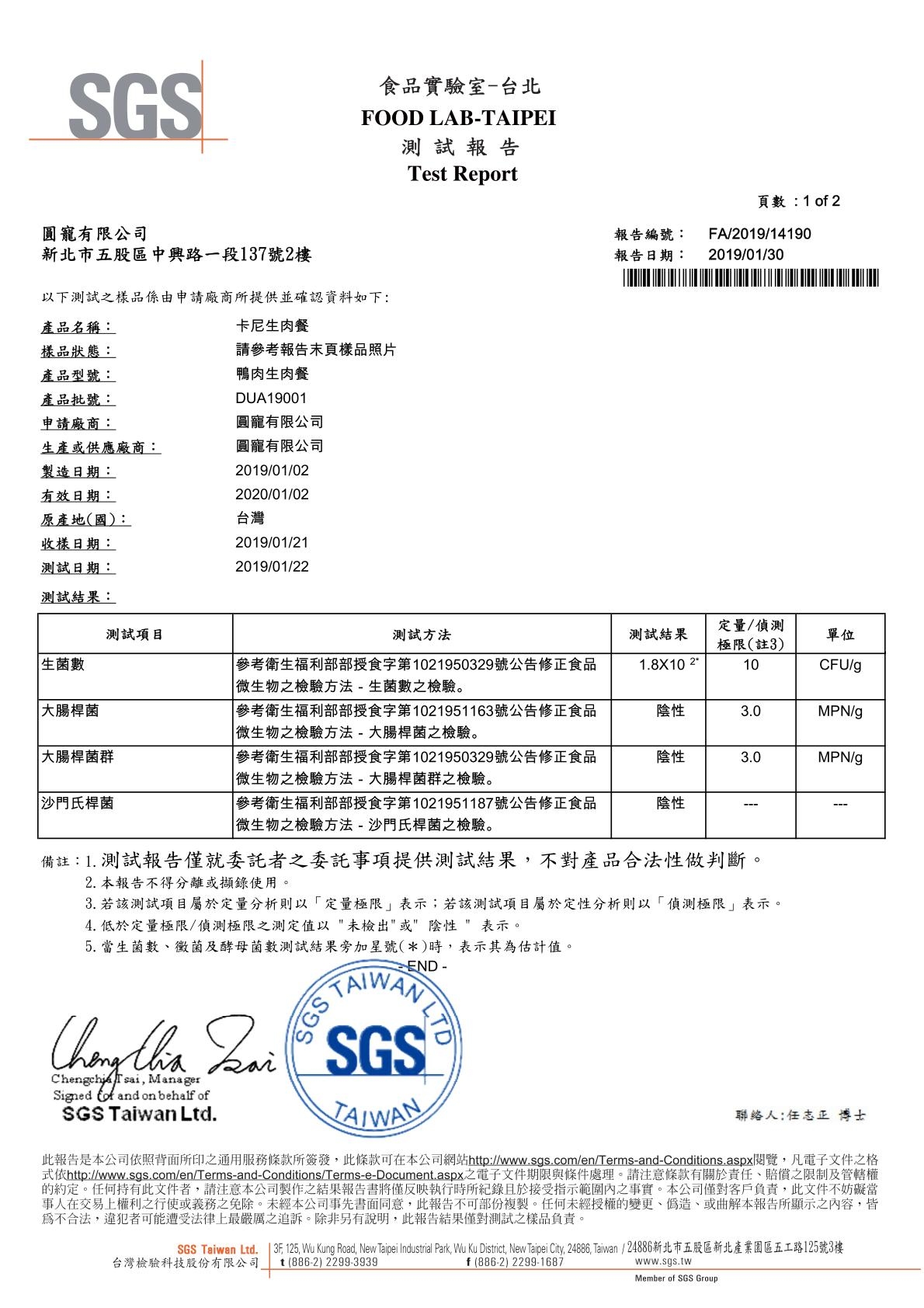 對應產品批號:DUA19001 - 鴨肉生肉餐