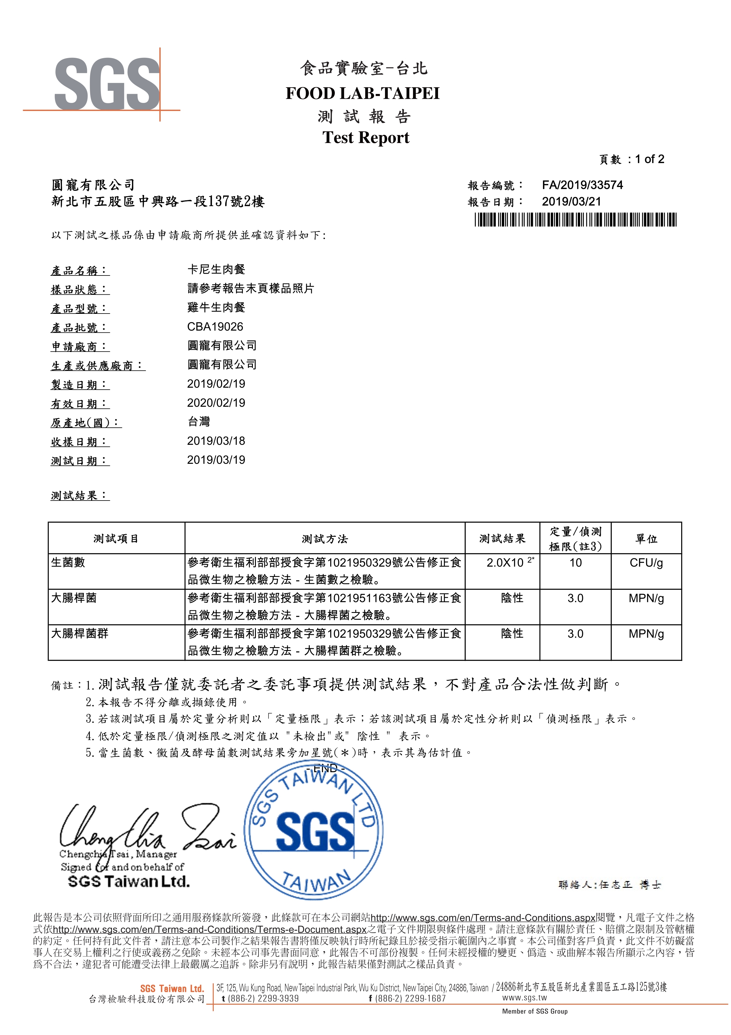 2019/03/21 卡尼生肉餐 生菌數檢測