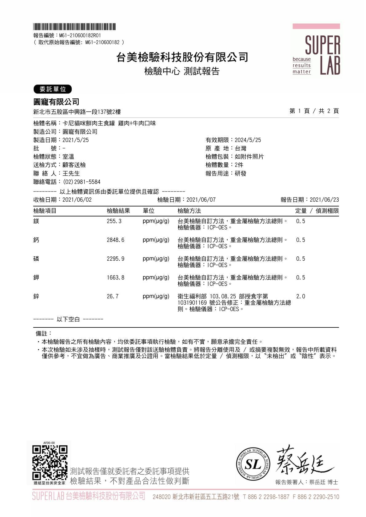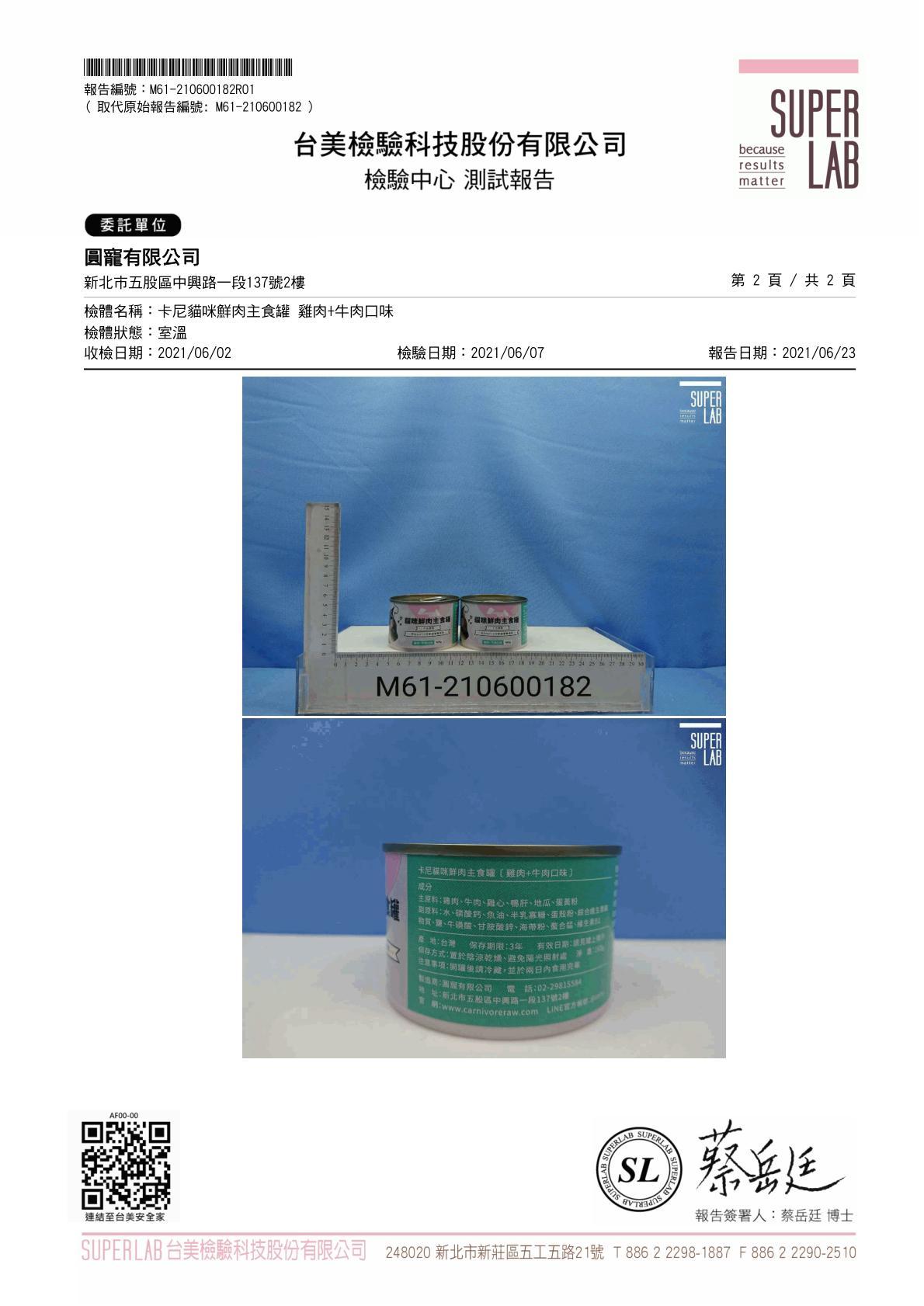 2021/06/23 卡尼鮮肉主食罐 雞肉+牛肉 礦物質檢驗