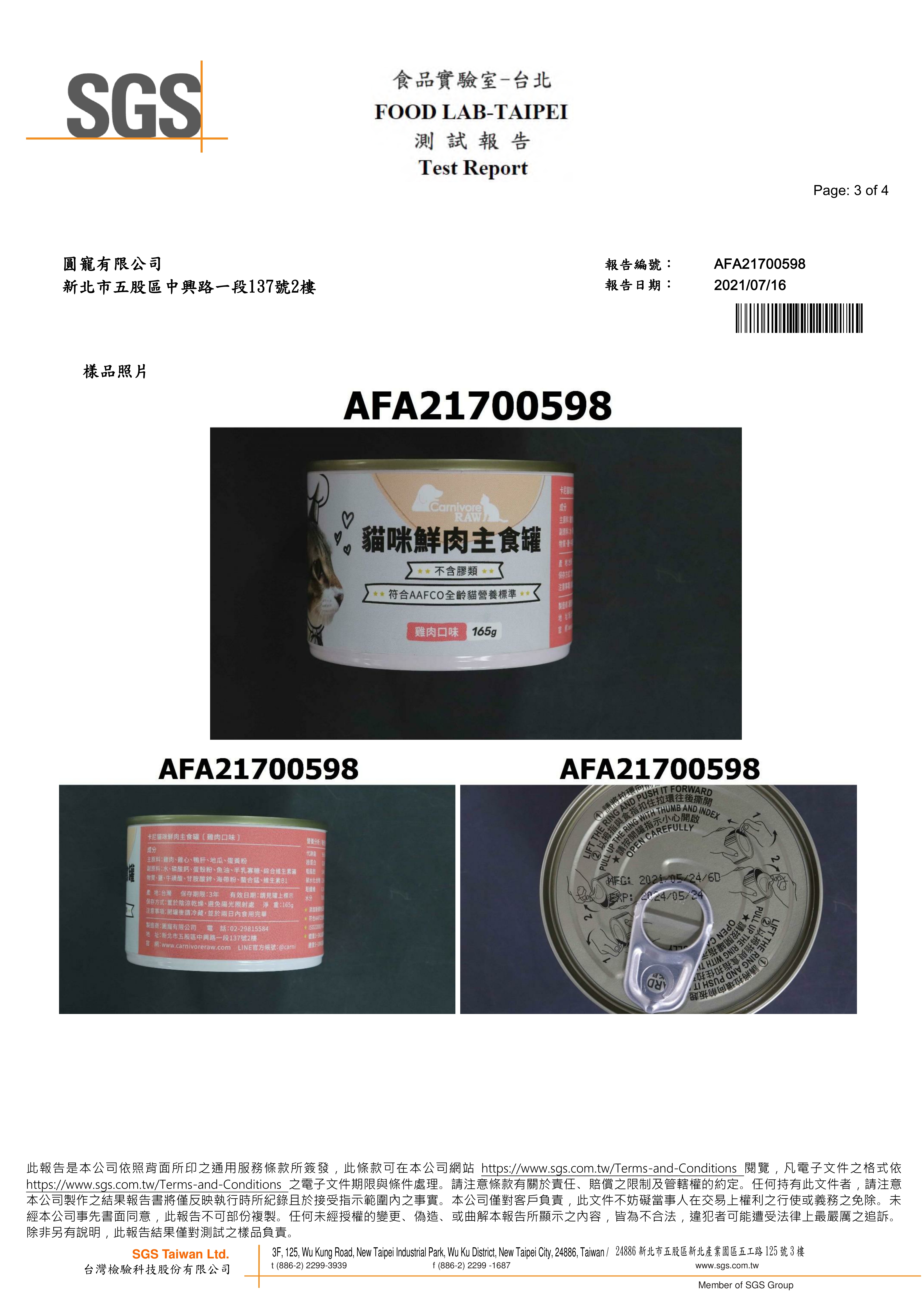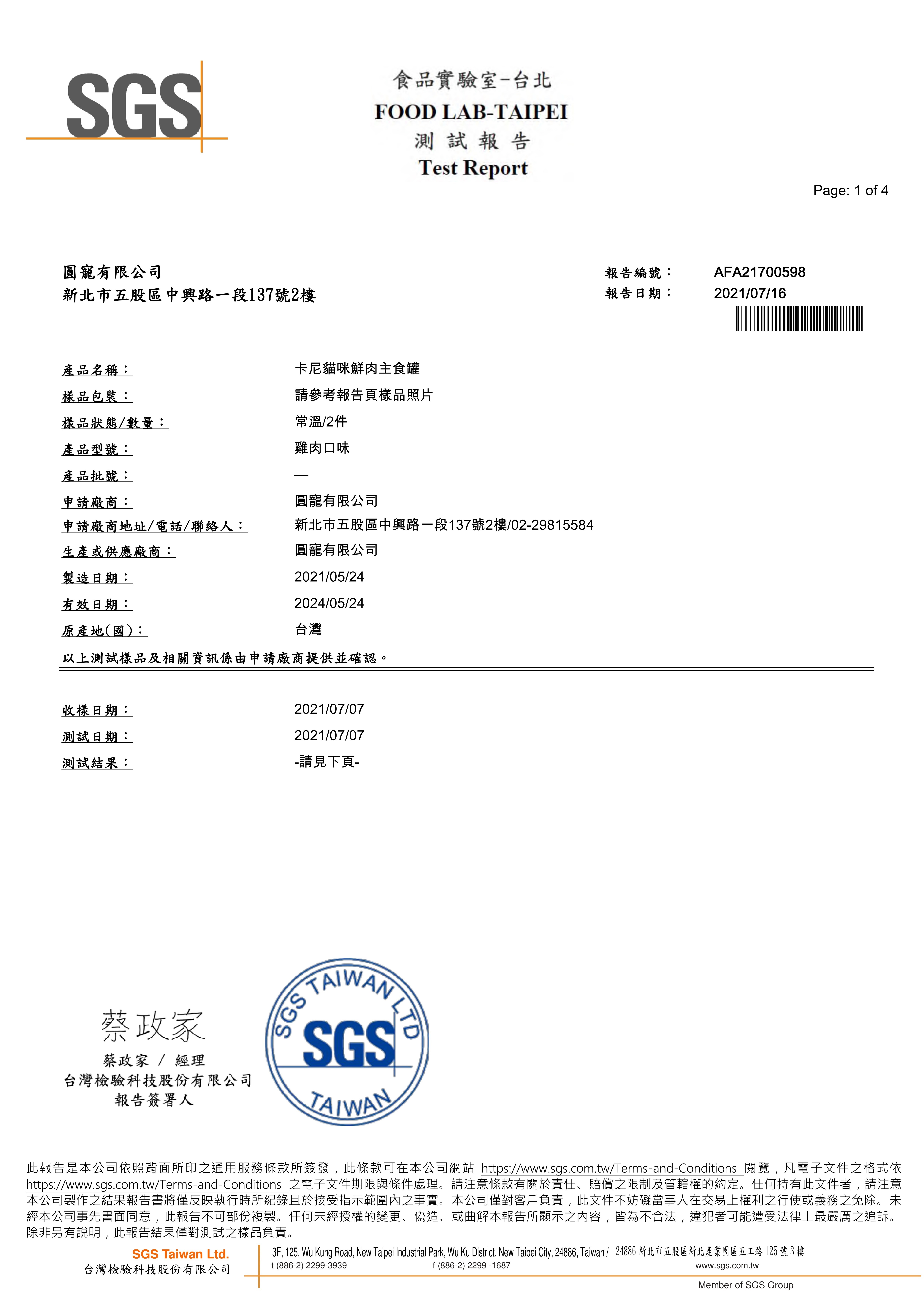 2021/07/16 卡尼鮮肉主食罐 雞肉口味 蛋白質脂肪檢驗