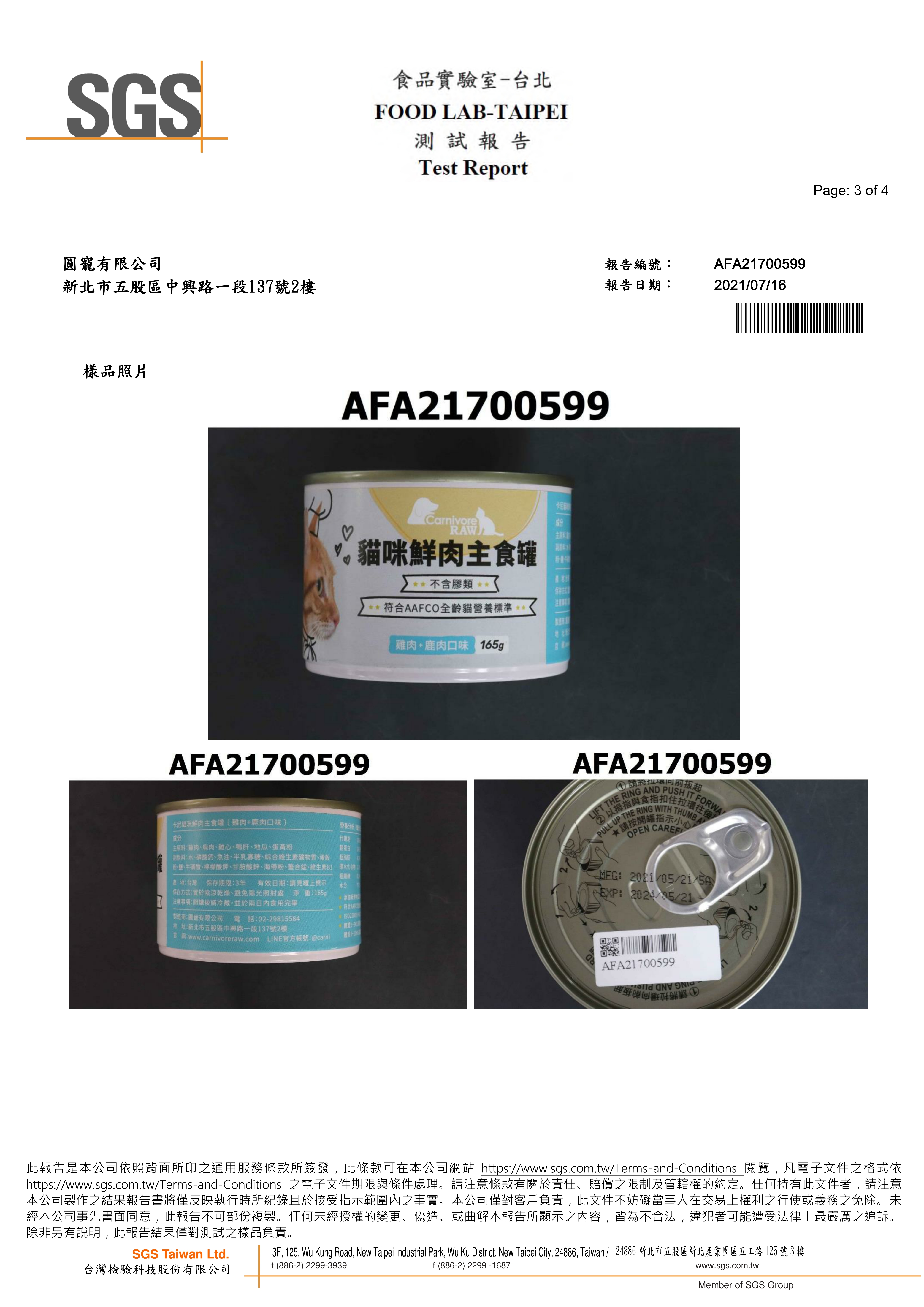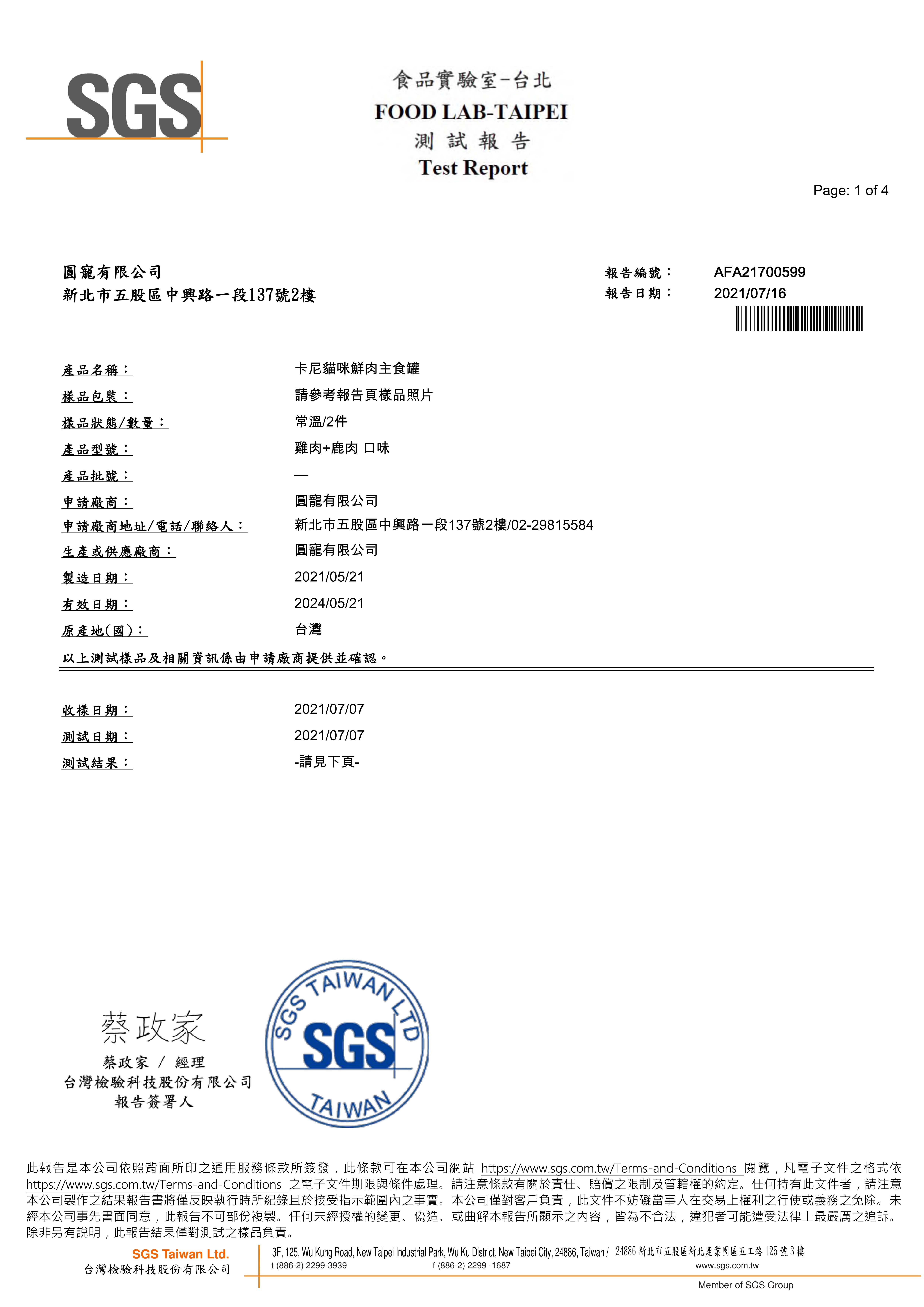 2021/07/16 卡尼鮮肉主食罐 雞肉+鹿肉 蛋白質脂肪檢驗