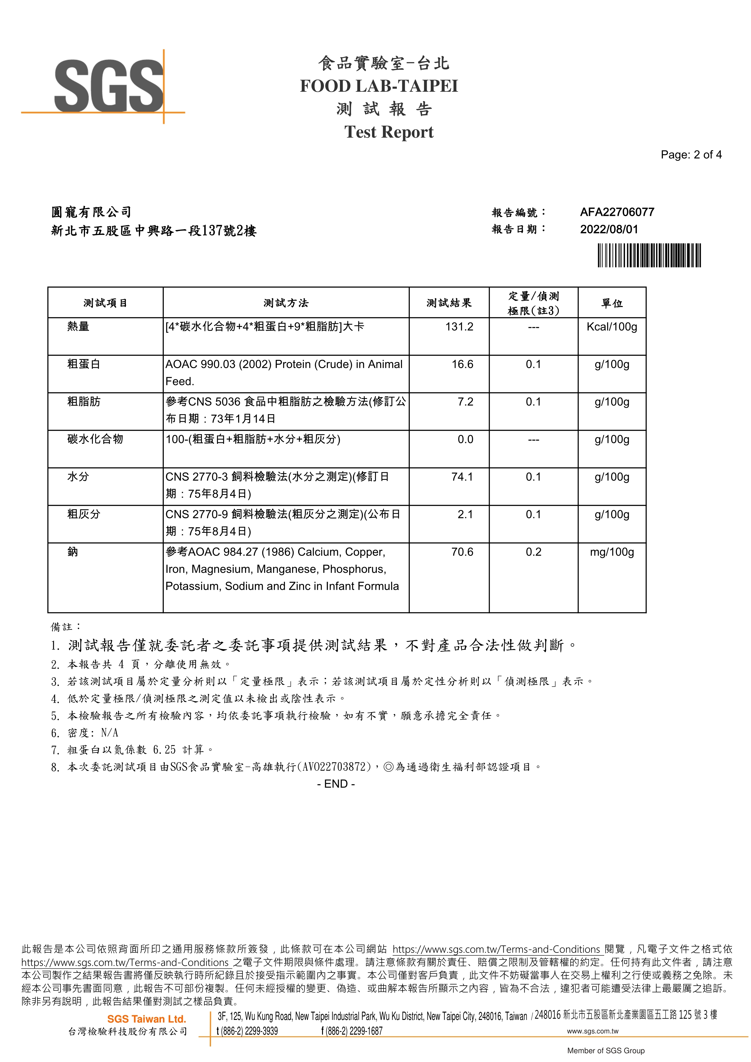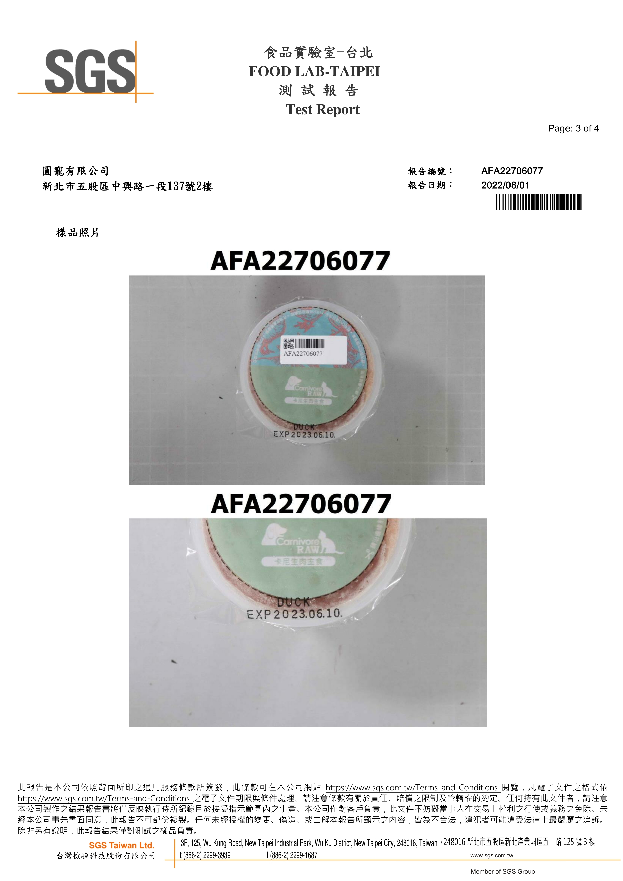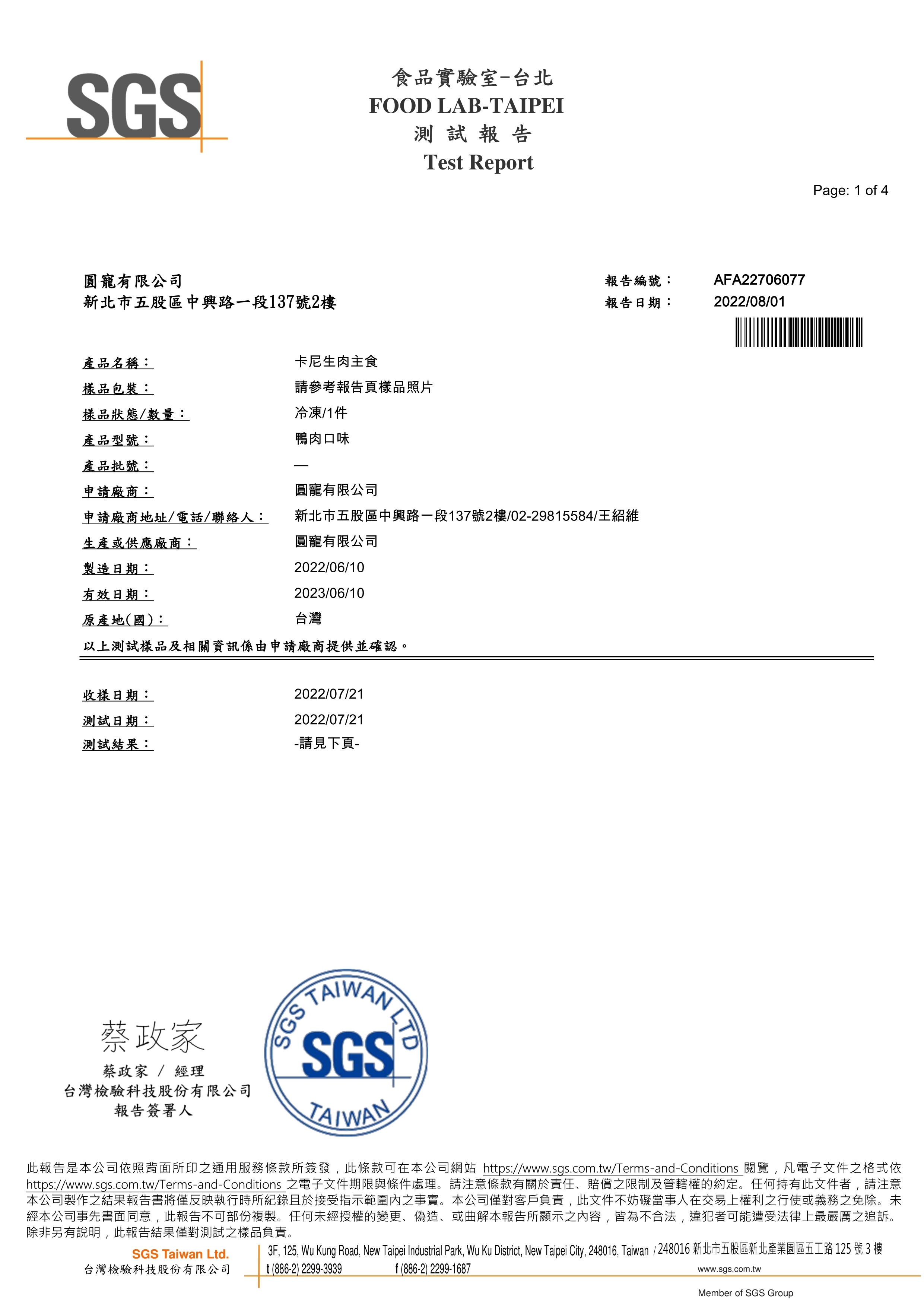 2022/08/01 鴨肉生肉餐新配方 五大營養素檢驗