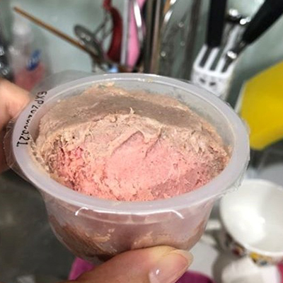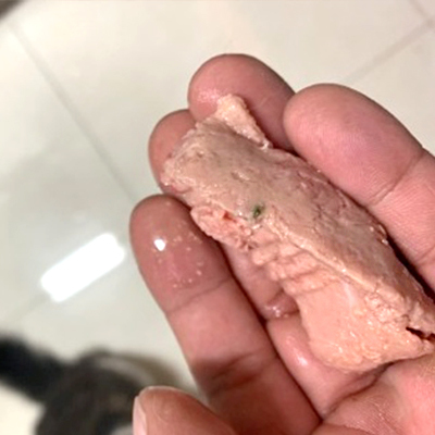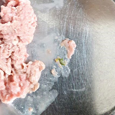 這個應該是內臟的部分,因為內臟的顏色較深又具有延展性,在絞碎及攪拌過程中無法完全融入肉中。如果是生肉變質或汙染的情況,整份包裝打開時應該會散發出明顯的氣味或是黏液,不會僅有一個小點,所以您可以放心。